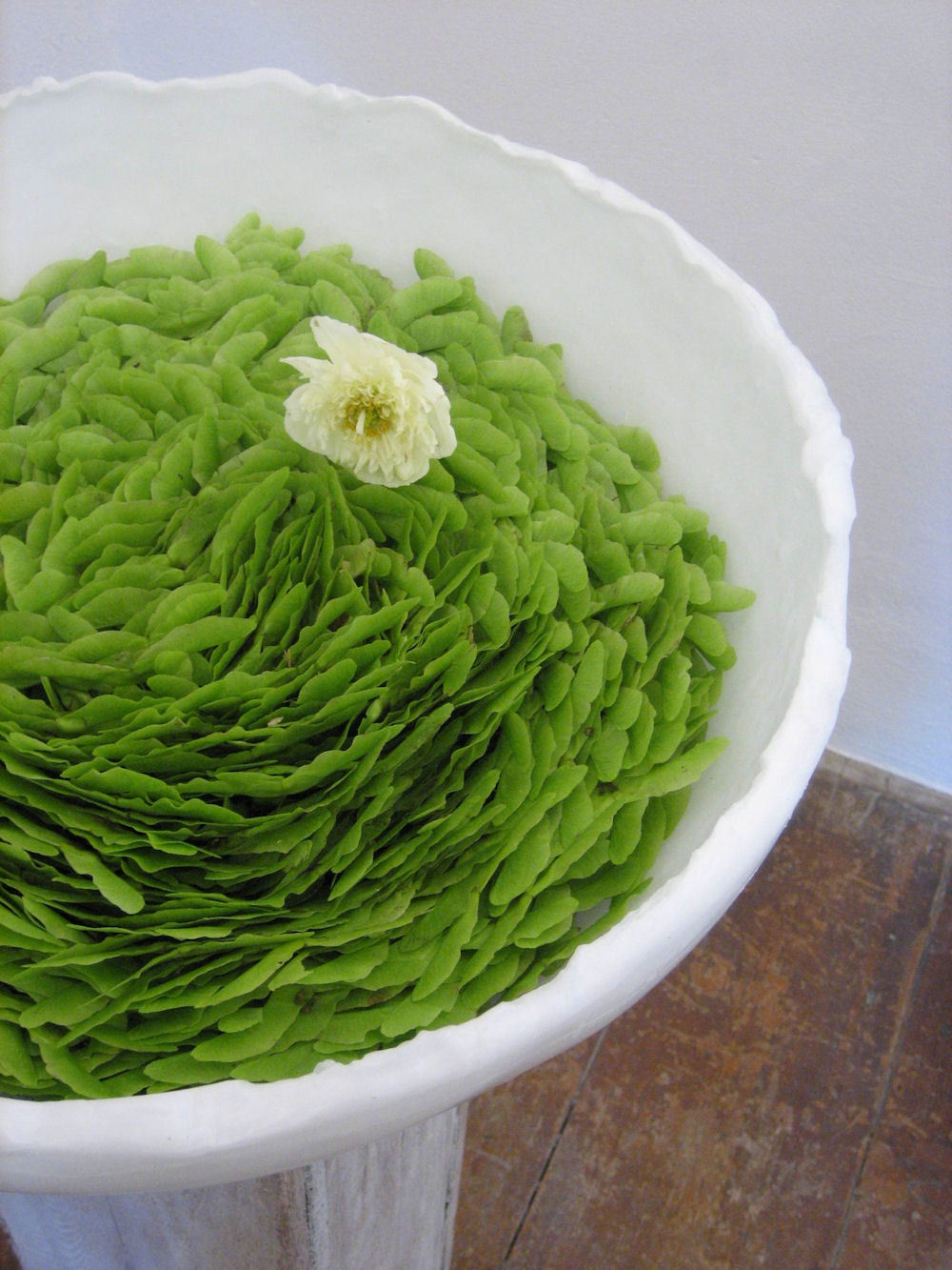 Ich versuche, durch meine Werkstücke nicht die Natur zu kopieren, sondern mit ihr zusammen etwas Natur in die Wohnräume der Kunden zu bringen. Man könnte dieses als Widerspruch ansehen, aber solange man die Natur „gerecht“ behandelt, entsprechend ihrer Art, ist es für mich richtig, sie zu “benutzen”. Schon die Ägypter, die man als erste richtige Blumenbinder bezeichnen könnte, haben genau so gehandelt. Sie haben hoch aufwändige Blumengebinde gestaltet und dieses göttliche Element ihren Göttern zurückgegeben. Durch die sehr aufwändige und oft sehr mühsame Arbeit mit der Natur, konnten sie im Einklang mit der Natur leben. So geht und ging es mir auch schon sehr oft. Als ich Werkstücke gestaltet habe, mit zum Beispiel ca. 50.000 Kiefern-Nadeln, die ich einzeln zu einem Kranz geformt habe, merkte ich, wie ich fast in Trance geriet bei dem Duft und der intensiven Arbeit. Ich war in dem Moment ein Teil dieses Werkstückes, ein Teil dieser Natur. Leider sind solche Momente eher selten, aber genau dieses genieße ich über alles. Aus diesem Grund möchte ich meine Werkstücke so detailliert und so spannungsreich gestalten, so wie die Natur sie uns zeigt. Und damit können auch Sie diese Natur selbst erleben und genießen.